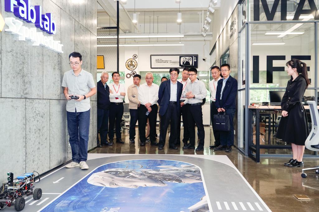 在汽車(che)學院,歐曉(xiao)理參觀(guan)了奧迪(di)技(ji)術實(shi)訓區(qu)、比亞迪(di)應用技(ji)術學院實(shi)驗(yan)實(shi)訓區(qu),稱(cheng)贊了校企“雙元(yuan)”育人的人才(cai)培養模式。