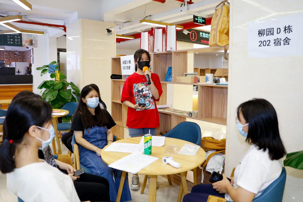 某(mou)學生(sheng)自覺身體不適、自測(ce)體溫38℃,一(yi)(yi)周(zhou)前曾(ceng)前往廣州荔灣(wan)區(qu)(qu),宿(su)(su)舍(she)長(chang)第一(yi)(yi)時間上報(bao)輔(fu)導(dao)(dao)(dao)員(yuan)(部(bu)門(men)防疫(yi)(yi)專員(yuan))和(he)學生(sheng)網(wang)格(ge)員(yuan)。輔(fu)導(dao)(dao)(dao)員(yuan)聯(lian)系(xi)學校醫(yi)(yi)(yi)務(wu)(wu)室(shi),上報(bao)學生(sheng)處(chu)和(he)學院領導(dao)(dao)(dao),電(dian)話安撫發(fa)熱學生(sheng)情(qing)緒,通知其戴好口罩前往臨時隔(ge)離(li)點等待醫(yi)(yi)(yi)護人員(yuan)進(jin)(jin)(jin)行(xing)(xing)(xing)(xing)下一(yi)(yi)步處(chu)理。宿(su)(su)舍(she)其他同學由輔(fu)導(dao)(dao)(dao)員(yuan)通知在本宿(su)(su)舍(she)等待后(hou)續處(chu)理。學生(sheng)網(wang)格(ge)員(yuan)向學生(sheng)處(chu)直報(bao)學生(sheng)發(fa)燒(shao)情(qing)況。后(hou)勤(qin)部(bu)門(men)對(dui)相(xiang)關(guan)場所進(jin)(jin)(jin)行(xing)(xing)(xing)(xing)消(xiao)毒(du)。臨時留觀點醫(yi)(yi)(yi)護人員(yuan)做好信息登記,復(fu)測(ce)體溫38.5℃,患(huan)者(zhe)(zhe)有(you)流行(xing)(xing)(xing)(xing)病學史,考慮(lv)為“新型冠狀肺(fei)炎(yan)疑似病例”撥打(da)120立即將患(huan)者(zhe)(zhe)轉診定點醫(yi)(yi)(yi)院,向醫(yi)(yi)(yi)務(wu)(wu)室(shi)防疫(yi)(yi)專員(yuan)報(bao)告(gao)。醫(yi)(yi)(yi)務(wu)(wu)室(shi)防疫(yi)(yi)專員(yuan)負責跟蹤診斷結果及(ji)報(bao)告(gao)。輔(fu)導(dao)(dao)(dao)員(yuan)做好患(huan)者(zhe)(zhe)的(de)生(sheng)活保(bao)障,告(gao)知密切接(jie)觸者(zhe)(zhe)加強自我防護、禁(jin)止(zhi)外出(chu)及(ji)聚集(ji)行(xing)(xing)(xing)(xing)為,直至有(you)明確的(de)診斷結果。得到醫(yi)(yi)(yi)院明確診斷后(hou)新冠肺(fei)炎(yan)病毒(du)核(he)酸陽性者(zhe)(zhe),由醫(yi)(yi)(yi)務(wu)(wu)室(shi)防疫(yi)(yi)專員(yuan)上報(bao)南(nan)山區(qu)(qu)疾控中(zhong)(zhong)心(xin)及(ji)學校領導(dao)(dao)(dao)部(bu)門(men)。輔(fu)導(dao)(dao)(dao)員(yuan)配(pei)合疾控中(zhong)(zhong)心(xin)組織對(dui)密切接(jie)觸者(zhe)(zhe)為期14天的(de)集(ji)中(zhong)(zhong)醫(yi)(yi)(yi)學觀察。后(hou)勤(qin)保(bao)障部(bu)門(men)配(pei)合南(nan)山區(qu)(qu)疾控中(zhong)(zhong)心(xin)進(jin)(jin)(jin)行(xing)(xing)(xing)(xing)相(xiang)關(guan)場所的(de)終末消(xiao)毒(du)。校心(xin)理中(zhong)(zhong)心(xin)、輔(fu)導(dao)(dao)(dao)員(yuan)積極做好患(huan)病學生(sheng)的(de)家訪工作(zuo),對(dui)患(huan)者(zhe)(zhe)及(ji)密接(jie)者(zhe)(zhe)進(jin)(jin)(jin)行(xing)(xing)(xing)(xing)心(xin)理危機干預。
