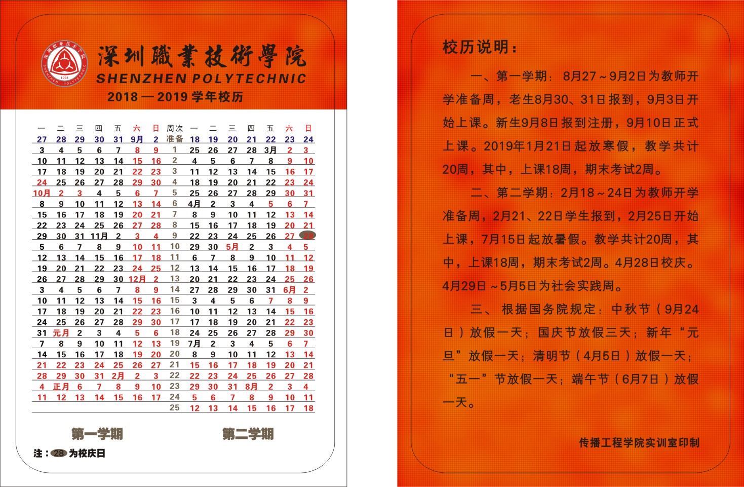 2018-2019學年(nian)校歷